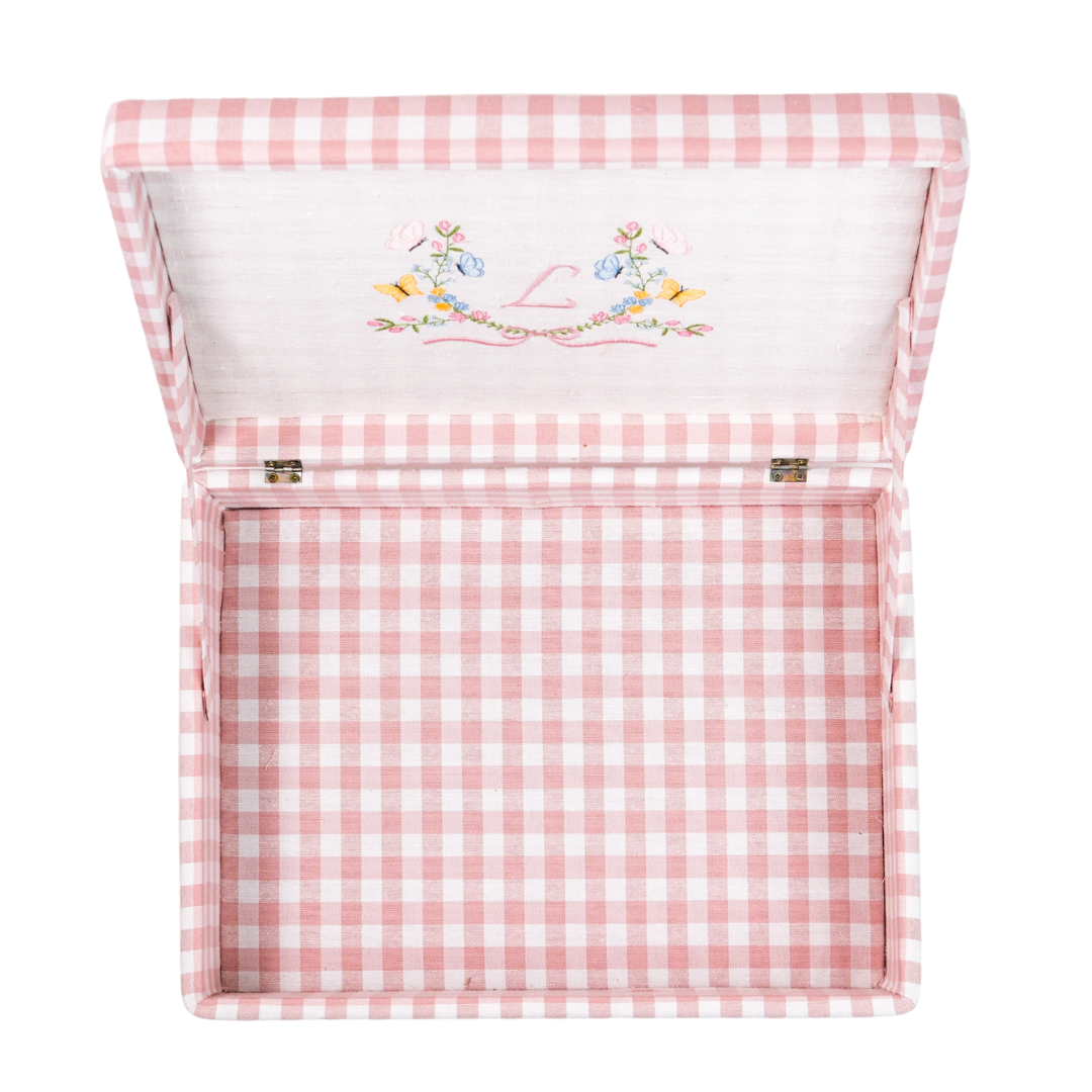 This handcrafted fabric-covered box is designed to store your baby’s most treasured memories.